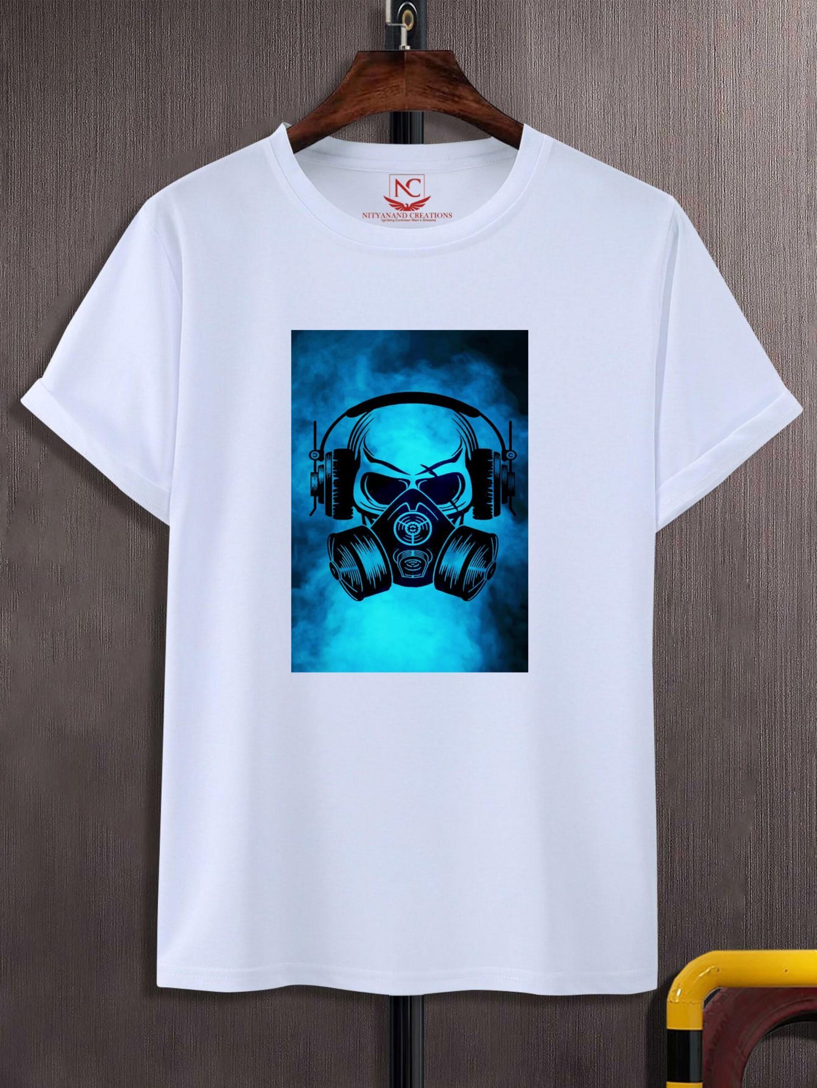 Mask Mania Printed White Crew Neck Men’s T-Shirt – Polyester-1100003