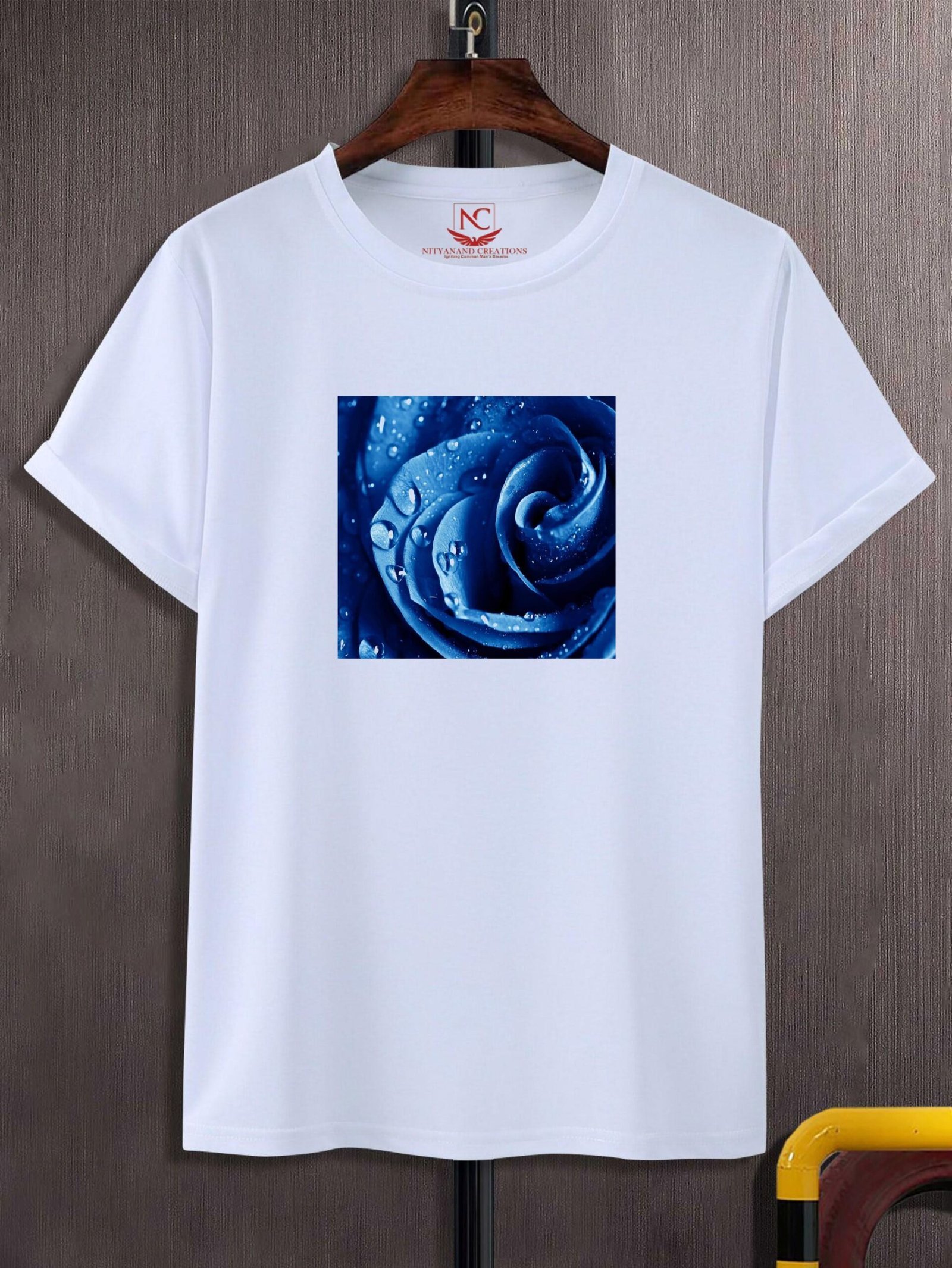 Be the first to review “Blue Rose Floral Elegance Graphic Printed White Tee-367”