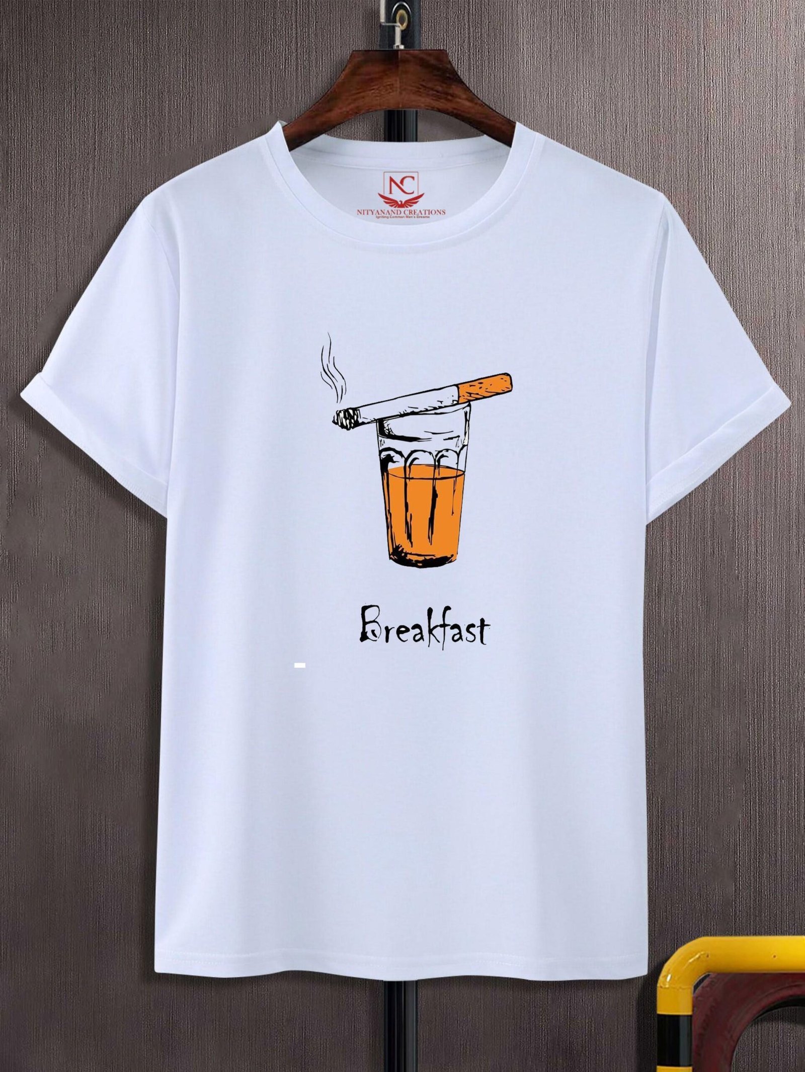 To keep your Breakfast Graphic Printed White T-Shirt looking its best, follow these care instructions. Machine wash the t-shirt in cold water with similar colors to prevent any potential color bleeding or fading. Use a mild detergent and avoid bleach or harsh chemicals that could damage the print or fabric. For best results, tumble dry on a low setting or hang the t-shirt to air dry. If ironing is necessary, do so on a low heat setting, taking care to avoid the graphic print to prevent any potential damage.