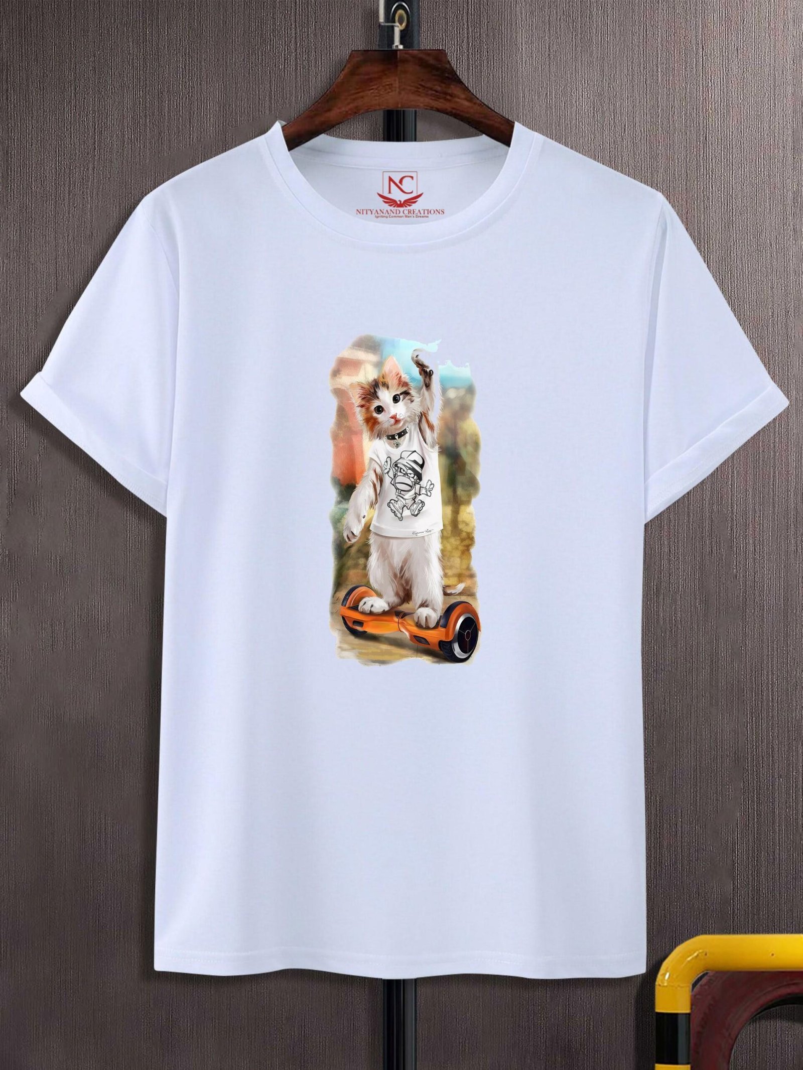 Be the first to review “Cat Skateboarding Graphic Print White Tee-1696”