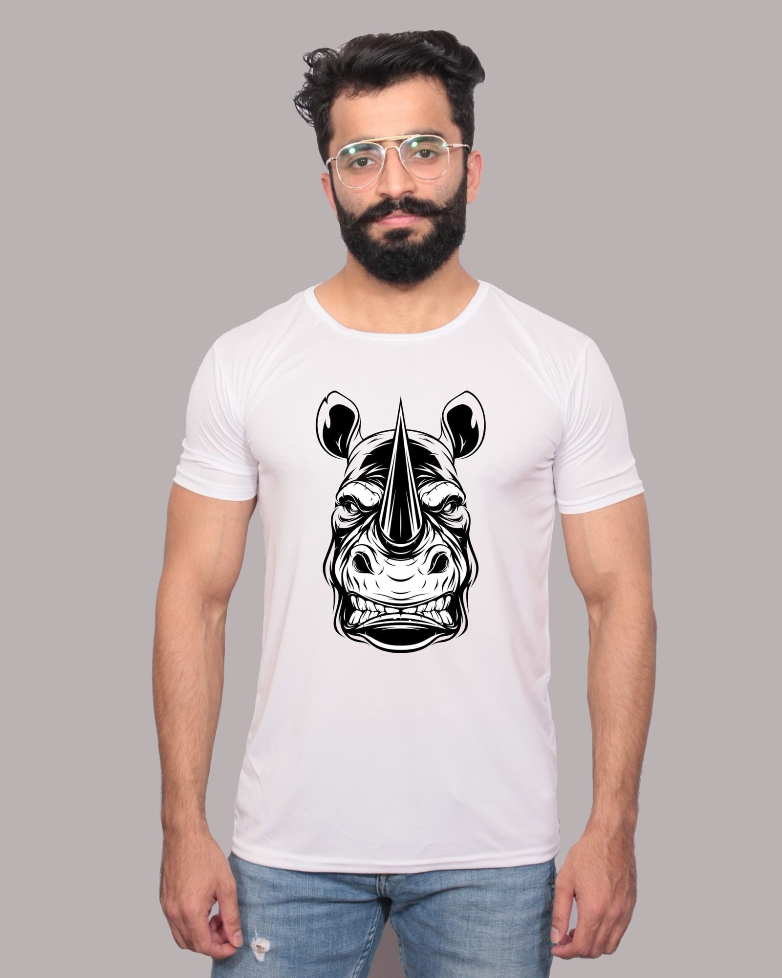 Maintaining the Ferocious Rhino Head Graphic White Tee is straightforward and hassle-free. The durable polyester fabric is resistant to fading and shrinking, ensuring that the graphic stays vibrant and true to size after multiple washes. It’s machine washable, making it easy to incorporate into your regular laundry routine. With minimal effort, you can keep this tee looking fresh and ready for any occasion.