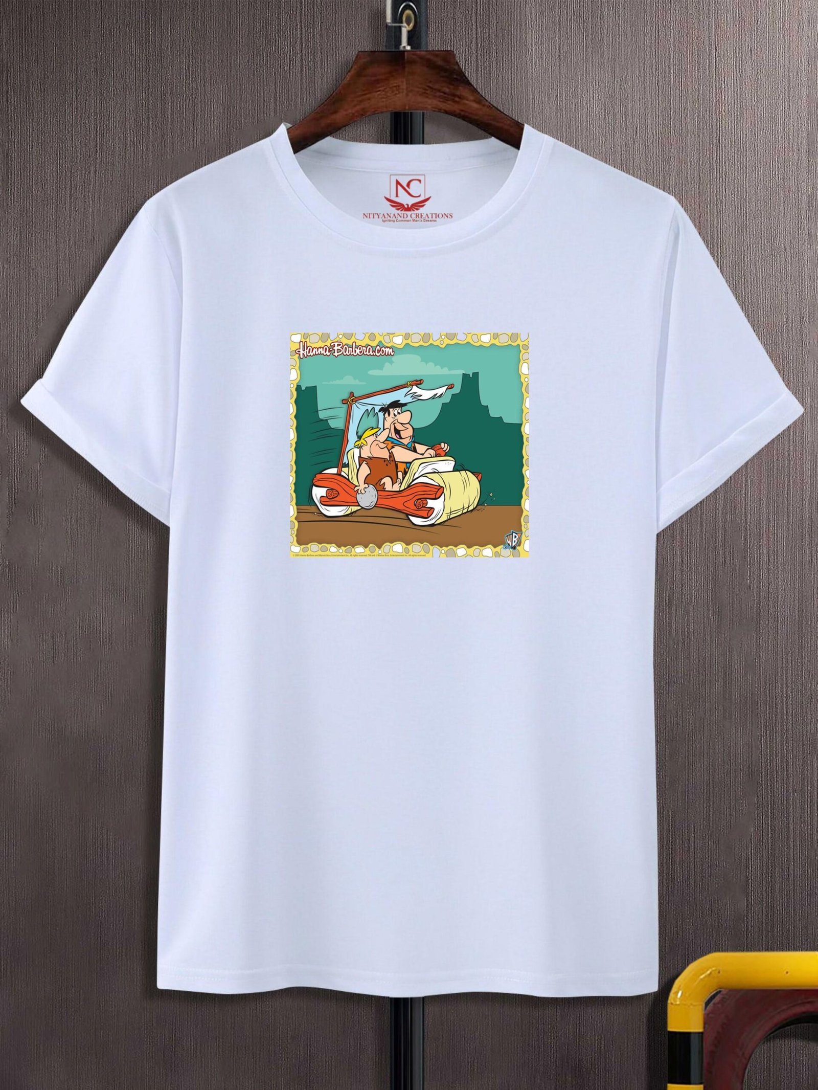 The white base color of the shirt allows the vibrant Fred Flintstone graphic to stand out, ensuring you make a bold statement wherever you go. The simplicity of the white t-shirt also makes it easy to pair with other wardrobe pieces—whether you’re teaming it with your favorite jeans, shorts, or even casual trousers, this shirt effortlessly adds a pop of fun to any outfit.