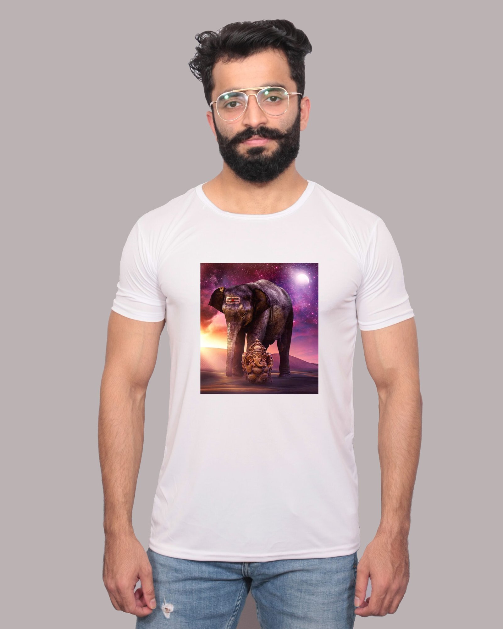 Embrace spirituality and style with the Divine Ganesha Graphic Printed White Tee. This unique t-shirt is designed for those who appreciate the rich cultural heritage and symbolism of Ganesha, the beloved Hindu deity known as the remover of obstacles and the god of beginnings. Made from high-quality polyester, this tee not only showcases a stunning design but also provides ultimate comfort for everyday wear, making it an essential piece in your wardrobe.
