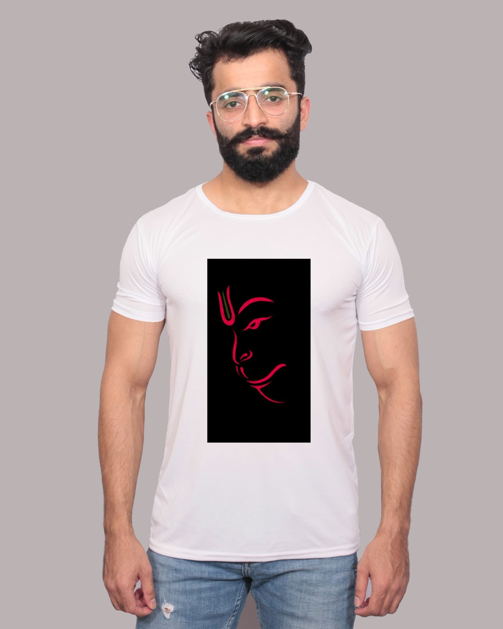 The centerpiece of this t-shirt is its captivating graphic design. Featuring an artistic depiction of Hanuman, the design showcases intricate details and vibrant colors that bring this divine figure to life. The graphic is printed using high-quality, fade-resistant inks, ensuring that the colors remain bright and vivid even after multiple washes. This t-shirt allows you to carry the essence of Hanuman with you, making it a striking addition to your wardrobe that will catch the eye of those around you.