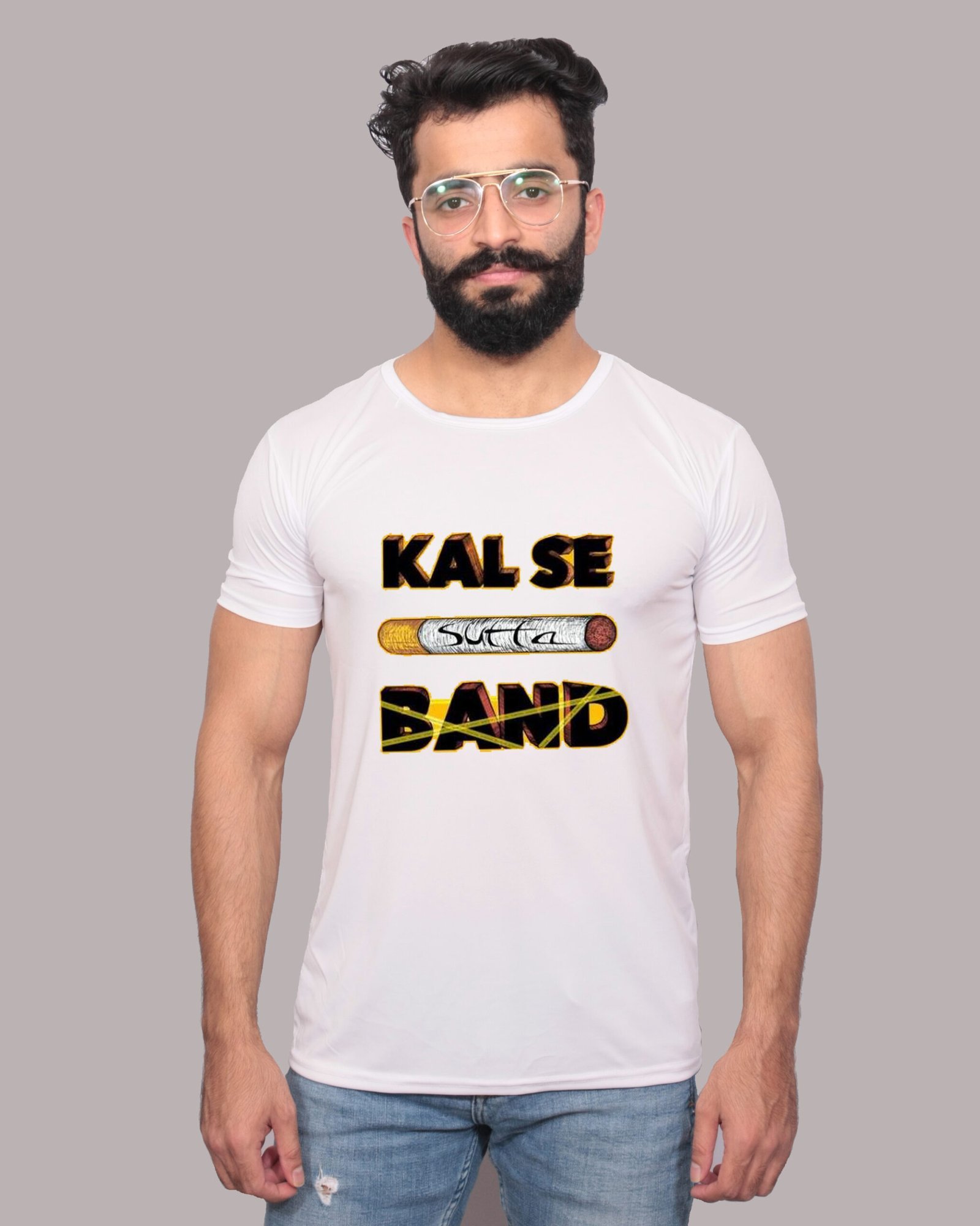 The highlight of this t-shirt is its playful graphic design, featuring the catchy phrase “Kal Se Band.” This bold and humorous message is printed in vibrant colors and eye-catching typography, making it a great conversation starter. The design captures a carefree spirit, encouraging wearers to embrace spontaneity and not worry about tomorrow. It’s a fun way to express your personality and share a laugh with those around you, making it perfect for gatherings with friends or casual outings.