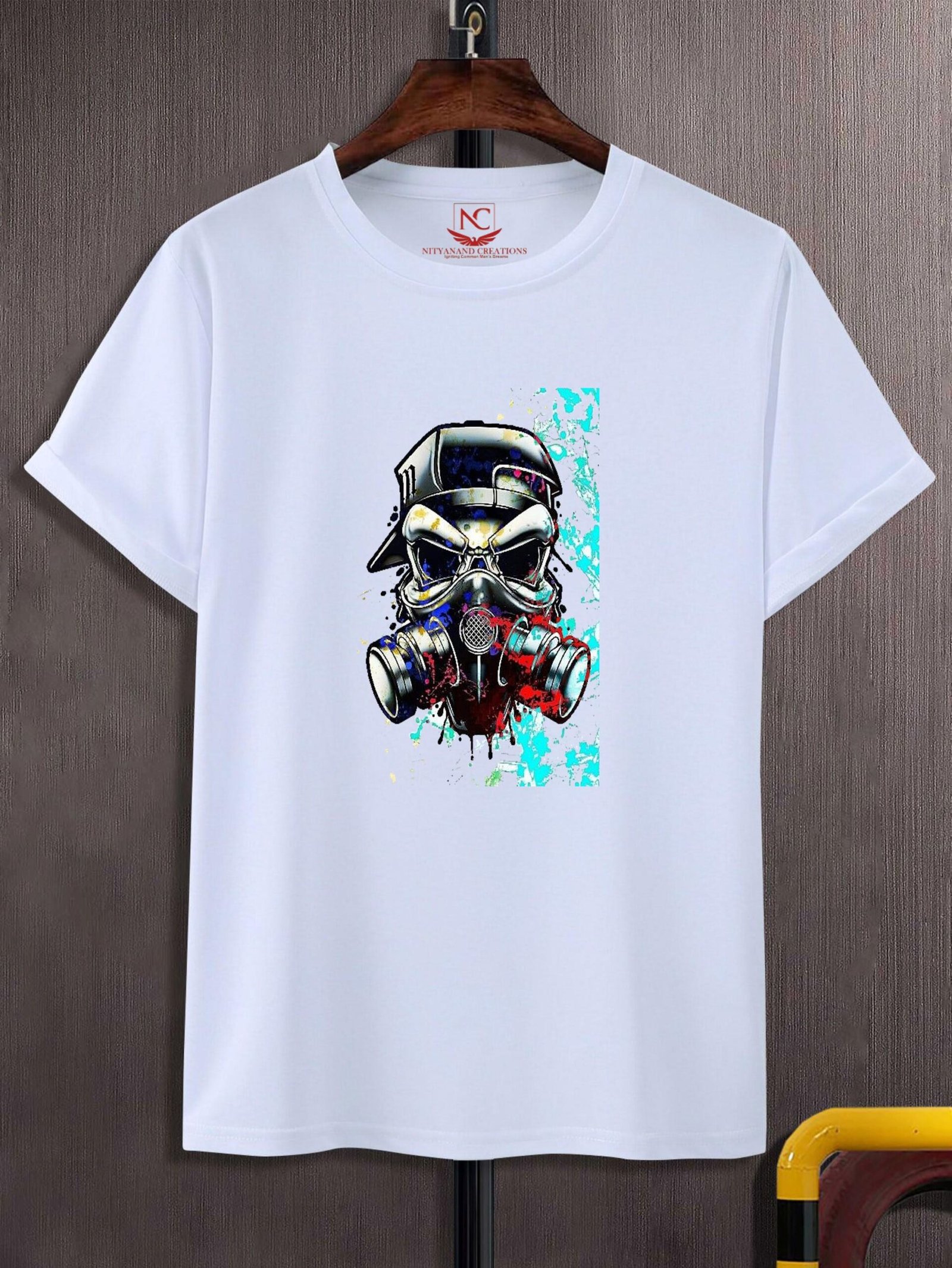 Mask Mania Printed White Crew Neck Men’s T-Shirt – Polyester-1100003