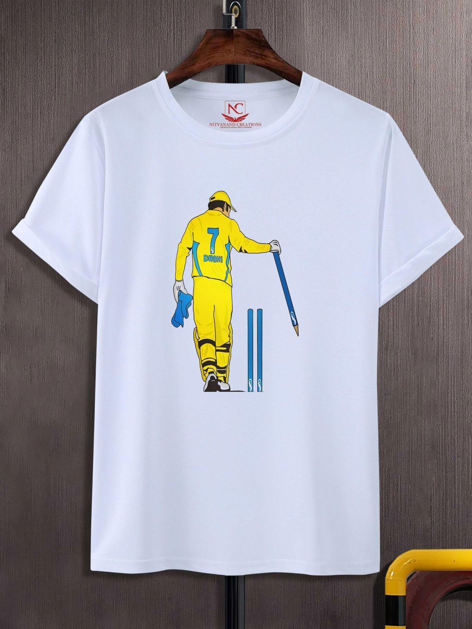 Its versatility makes it an easy addition to any casual wardrobe. Pair it with jeans, shorts, joggers, or even a casual jacket for a laid-back yet stylish look. Whether you’re attending a cricket match, a fan meet-up, or simply enjoying a day off, this t-shirt is perfect for any occasion. It’s a great option for those who want to show their admiration for MS Dhoni while maintaining a relaxed, trendy appearance.