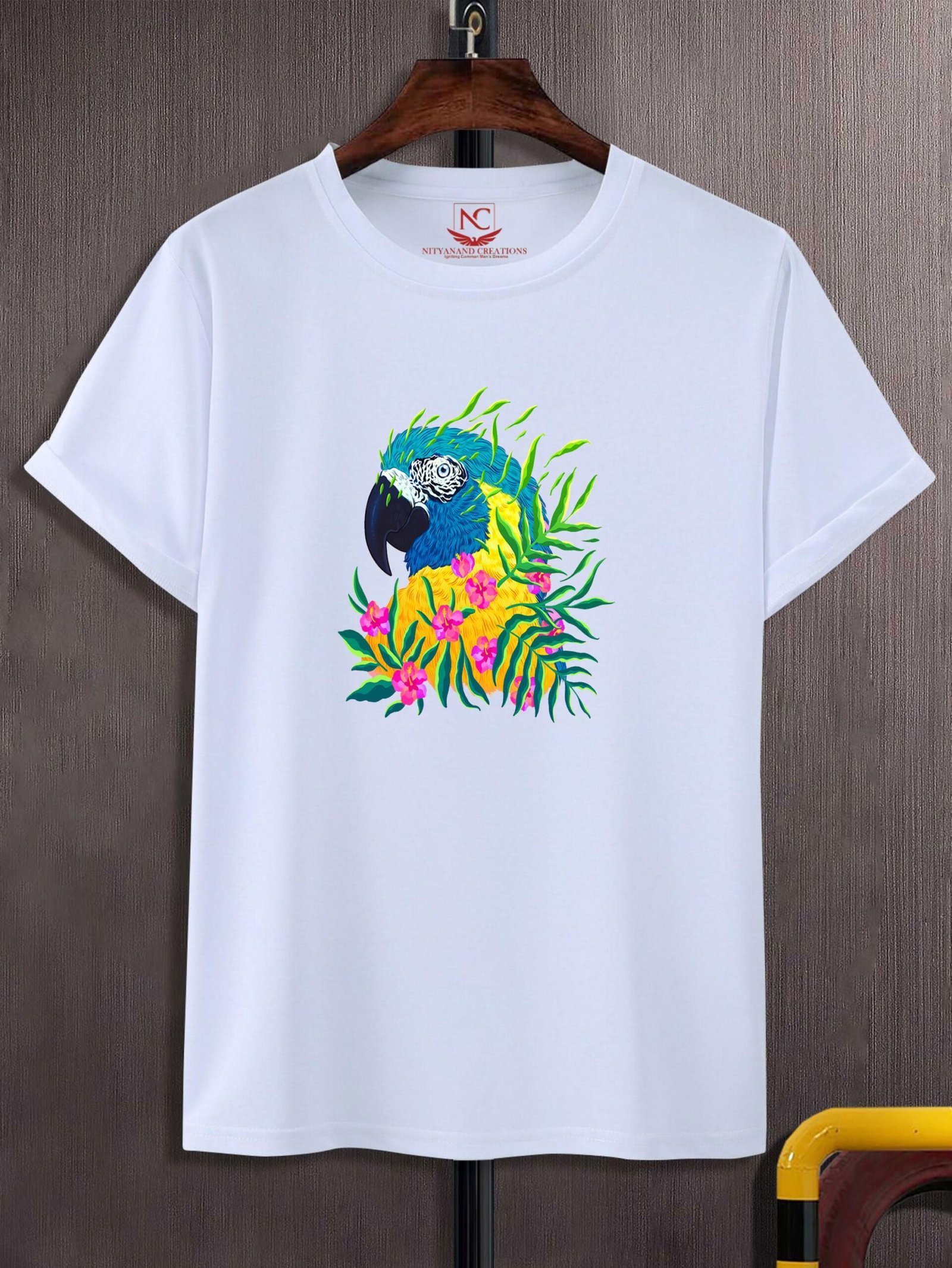 One of the standout features of the Parrot Graphic Printed White T-Shirt is how easy it is to care for. The polyester fabric is not only resistant to wrinkles but also maintains its shape and vibrant design wash after wash. You can simply toss it into the washing machine without worrying about the print fading or peeling, which makes this shirt perfect for everyday wear.