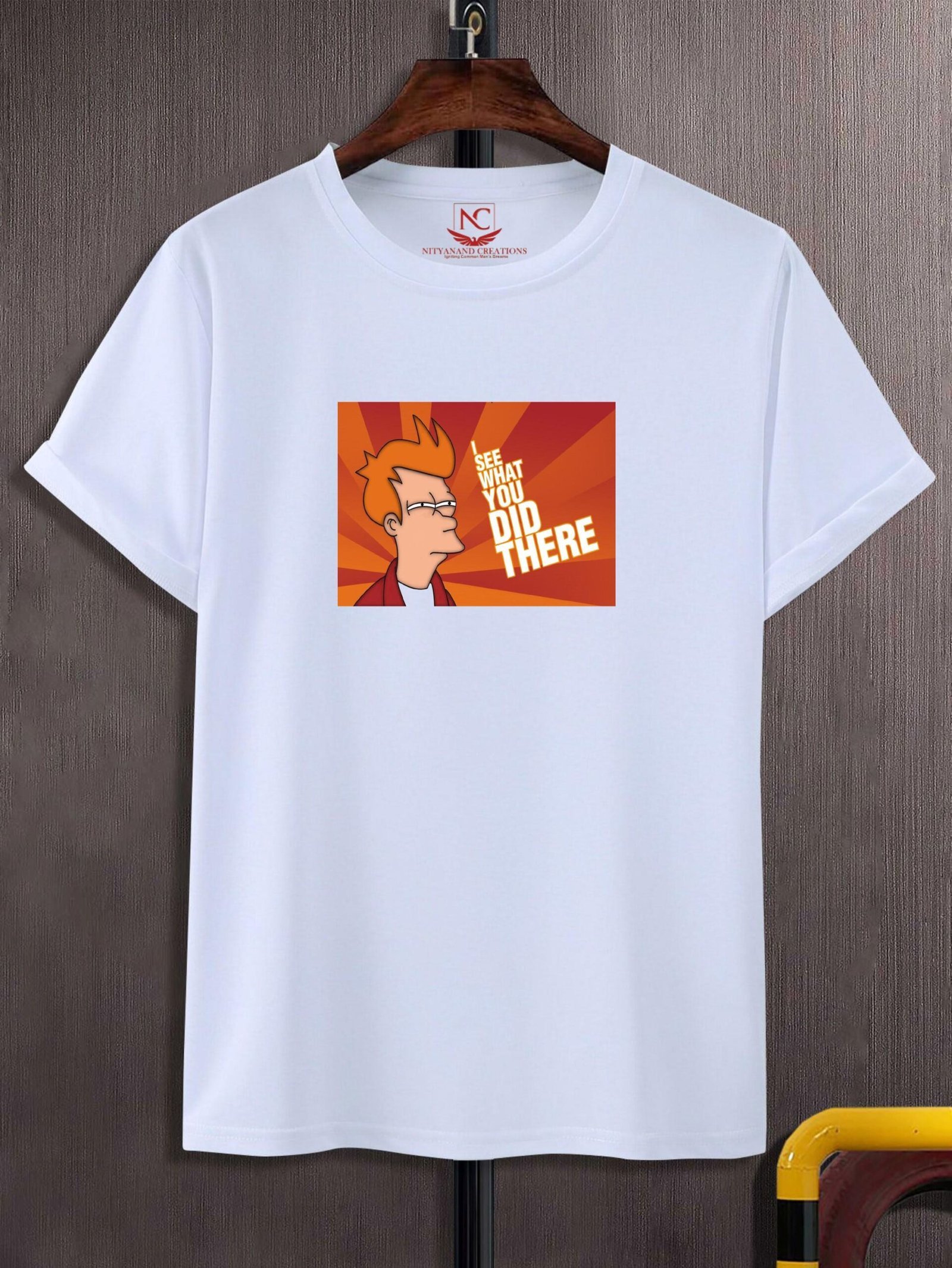 Step into the world of science fiction and irreverence with the Philip J. Fry Graphic Printed White T-Shirt. This t-shirt is a tribute to one of the most beloved and iconic characters from the animated show Futurama, Philip J. Fry. Known for his wit, charm, and adventures through time and space, Fry is the perfect embodiment of a carefree, fun-loving rebel. This t-shirt celebrates that spirit, combining a striking graphic with the comfort and durability of premium polyester.