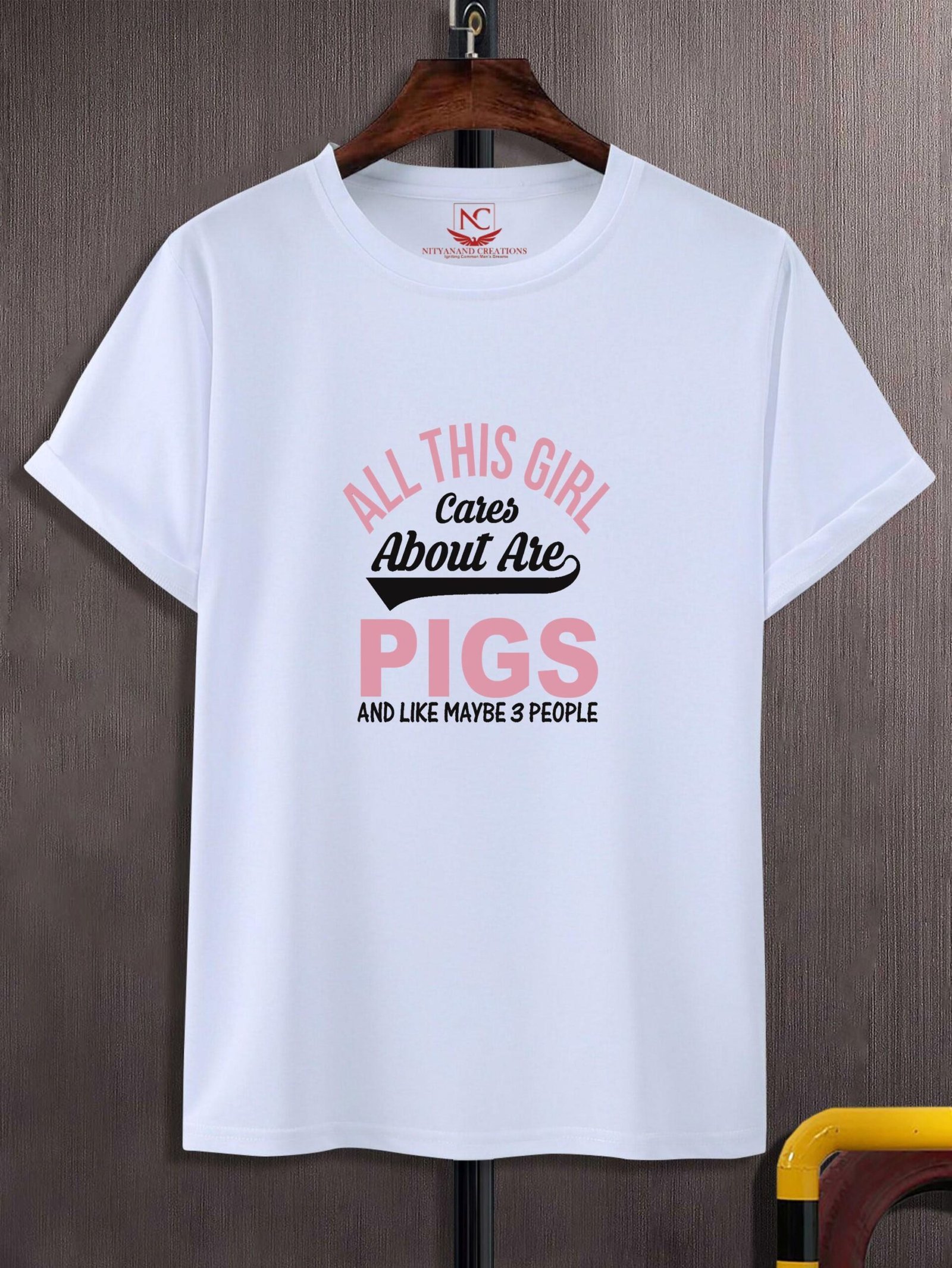 The Playful Pigs Graphic Printed White Tee features a modern fit that flatters all body types. Its classic crew neck design and short sleeves make it a timeless piece that can be easily styled in various ways. This tee is incredibly versatile; pair it with your favorite jeans or shorts for a casual look, or tuck it into a skirt for a fun and flirty outfit. Dress it up with accessories for a quirky evening out, or wear it as a relaxed layer under a cardigan or denim jacket.
