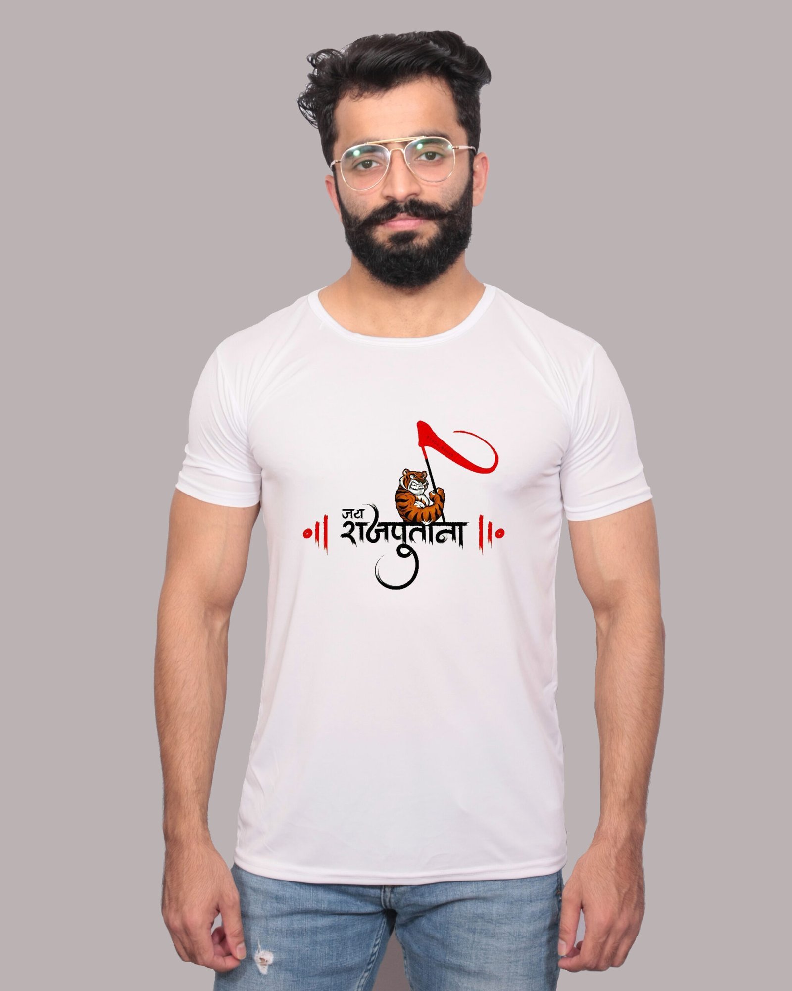Designed for versatility, the Rajputana t-shirt can easily transition from casual to semi-formal occasions. Its classic fit allows for easy pairing with a variety of outfits. Wear it with jeans or chinos for a laid-back look, or dress it up with a blazer for an evening out. The timeless white color serves as a perfect backdrop for the vibrant graphic, making it a versatile addition to any wardrobe. This t-shirt is not only a fashion staple but also a way to showcase your love for culture and heritage.