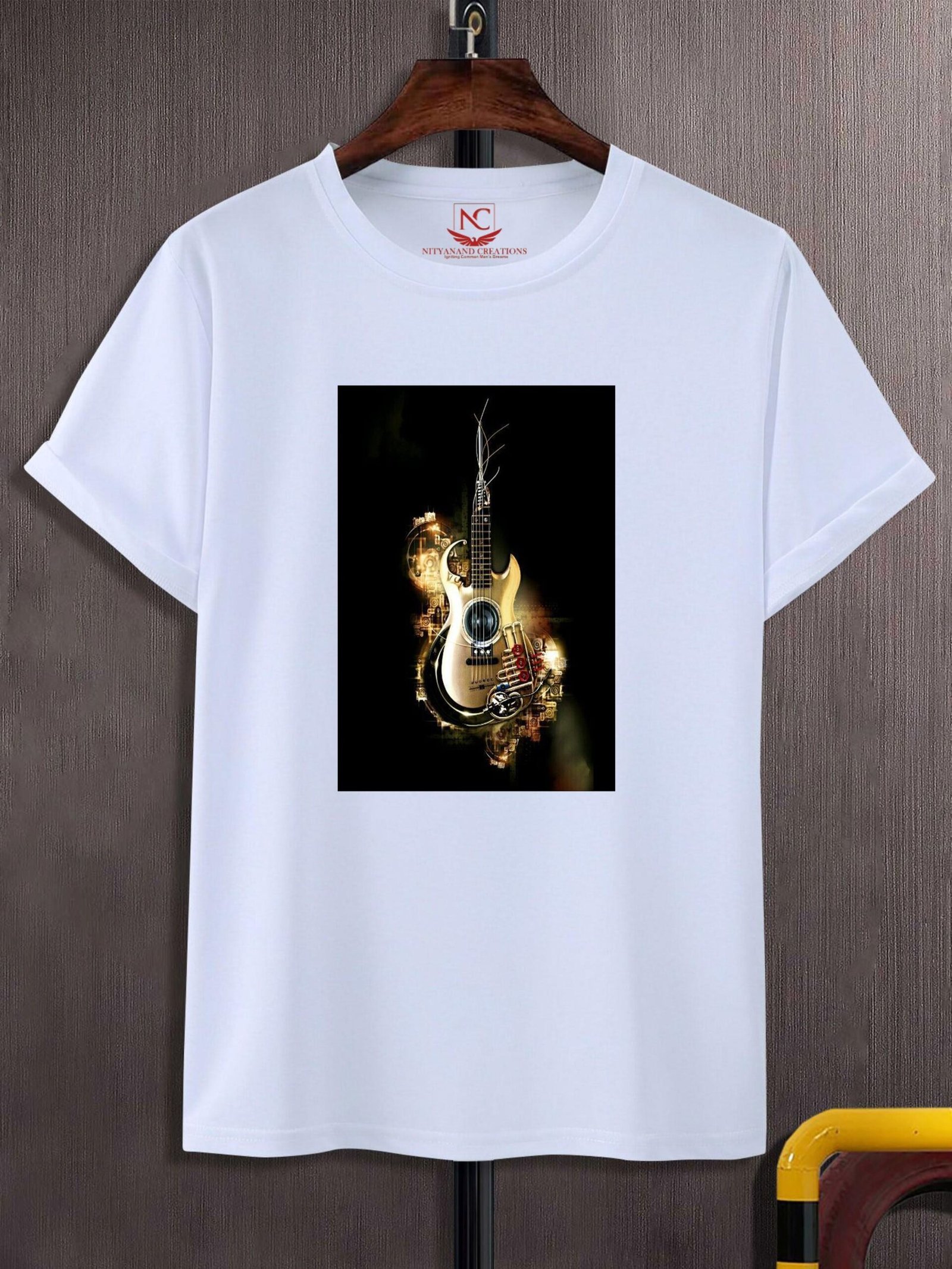 Discover the harmony of style and comfort with our Guitar Graphic Printed White T-shirt. Crafted from premium polyester fabric, this shirt promises a lightweight feel that keeps you cool and comfortable all day long. The sleek white canvas serves as the perfect backdrop for a striking guitar graphic, meticulously printed to capture every detail of the instrument’s beauty and intricacy.
