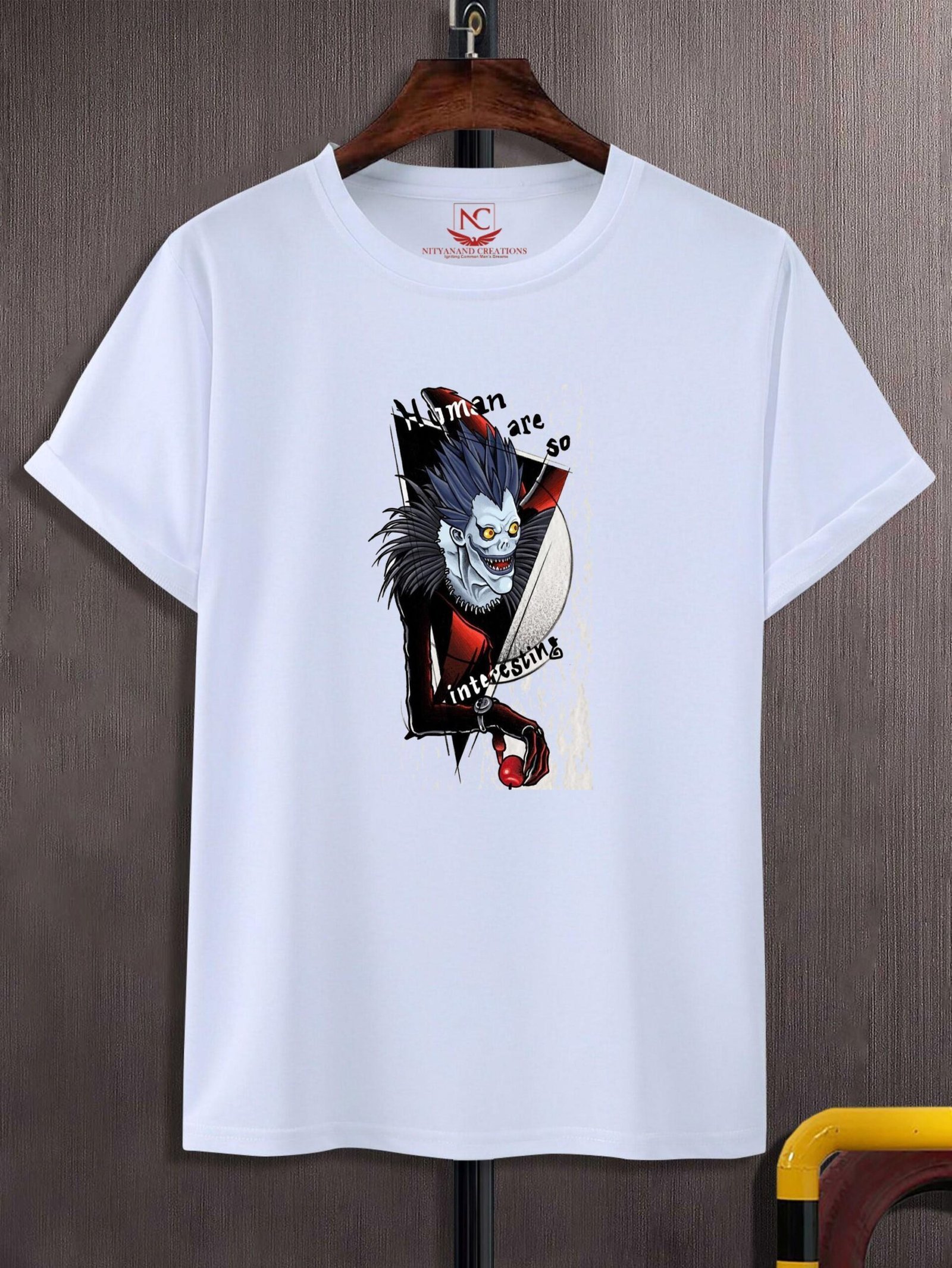 Embrace the dark allure of the Death Note with this Ryuk graphic tee! This men’s t-shirt features a detailed illustration of Ryuk, the enigmatic Shinigami who dropped the Death Note into the human world. Made from comfortable (choose cotton or moisture-wicking polyester) fabric, this shirt is perfect for everyday wear. The high-quality print ensures the design stays vibrant wash after wash. This t-shirt is a great conversation starter for any Death Note fan and a fun way to show your appreciation for this captivating character.
