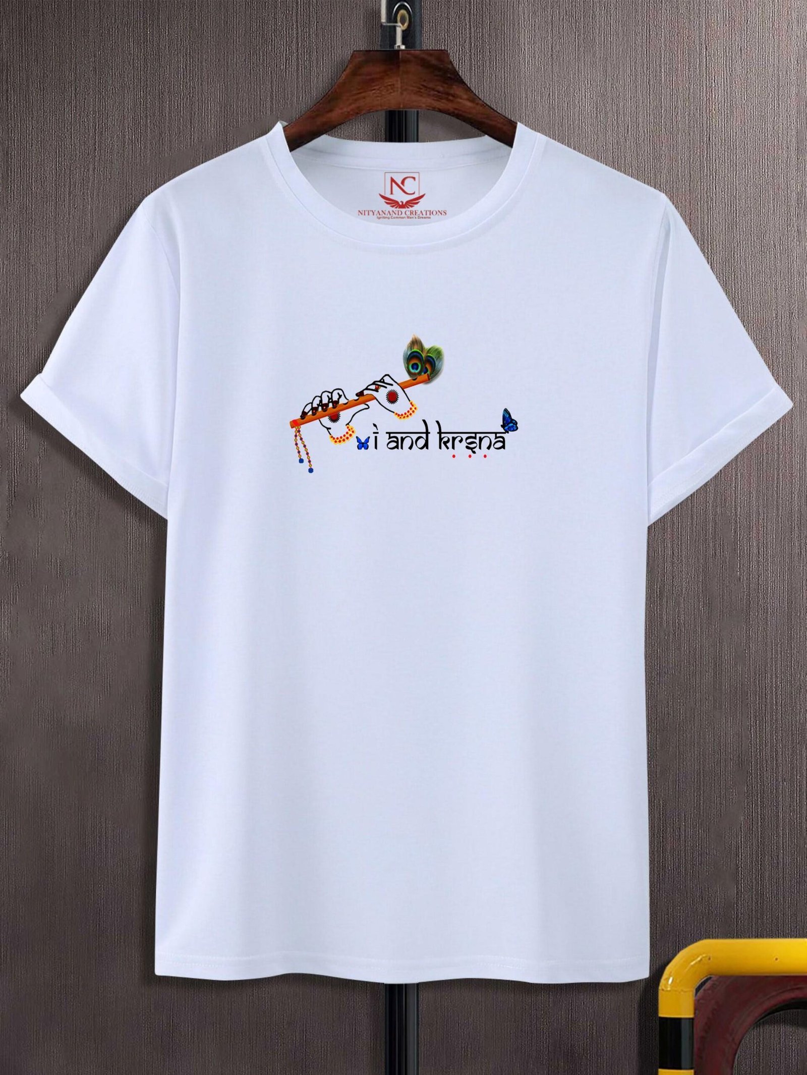 Fill his heart with devotion with this melodious Krishna Basuri graphic tee! This soft polyester t-shirt is perfect for young devotees of Lord Krishna. The vibrant print showcases a beautiful illustration of Krishna playing his beloved basuri, a flute that embodies his divine music. Made with breathable polyester, this shirt will keep him cool and comfortable throughout the day. The classic fit allows for ease of movement, while the high-quality printing ensures the design stays bright wash after wash. This shirt is machine washable for easy care, making it a great choice for busy parents.