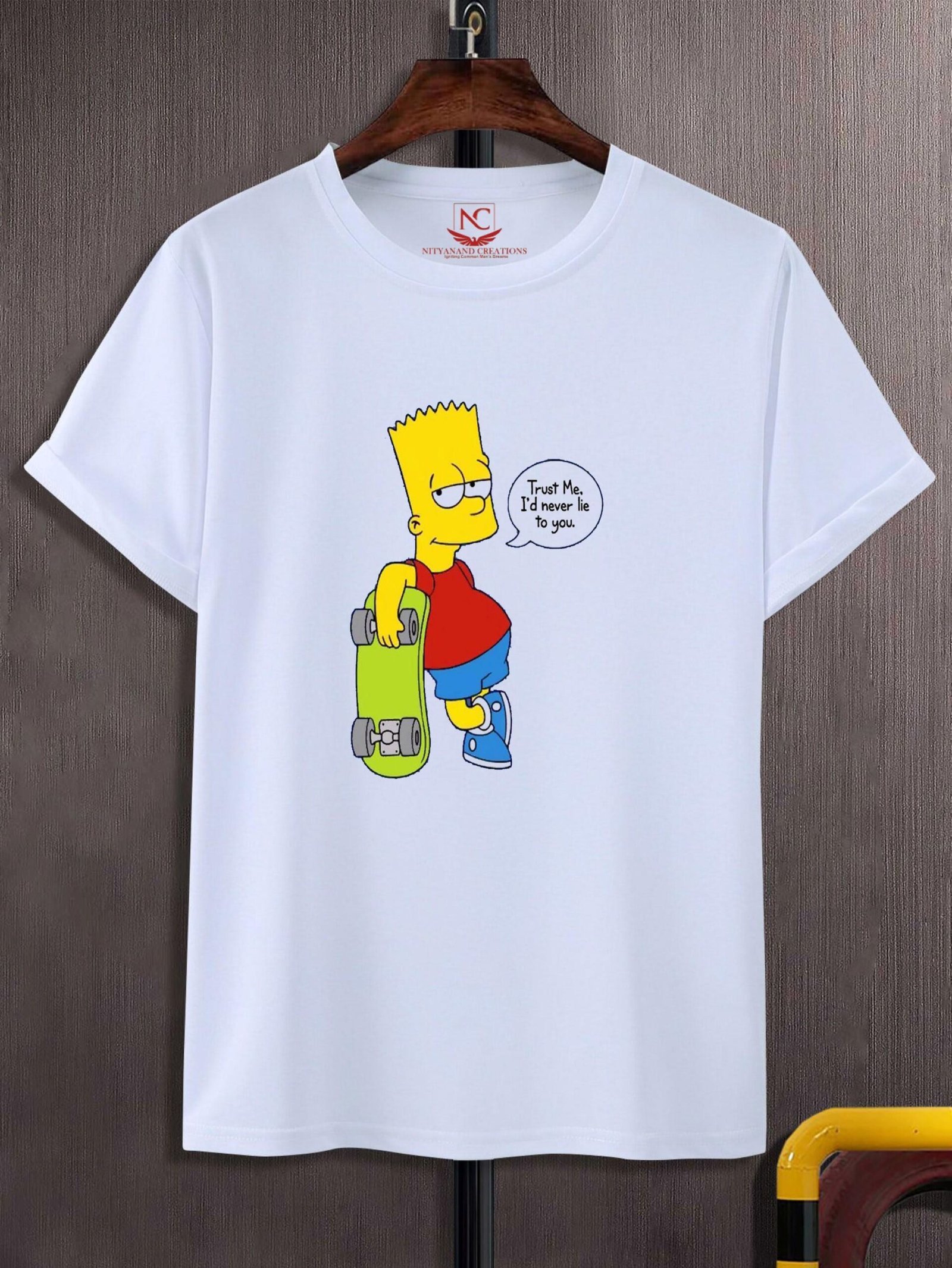 The front of this t-shirt features a bold, high-quality graphic print of Bart Simpson, one of the most beloved and mischievous characters in the world of cartoons. His famous catchphrase, “Don’t Have a Cow, Man!” might come to mind as you sport this graphic tee. The vibrant print captures Bart in all his glory, showcasing his iconic attitude and mischievous grin that’s forever ingrained in pop culture.