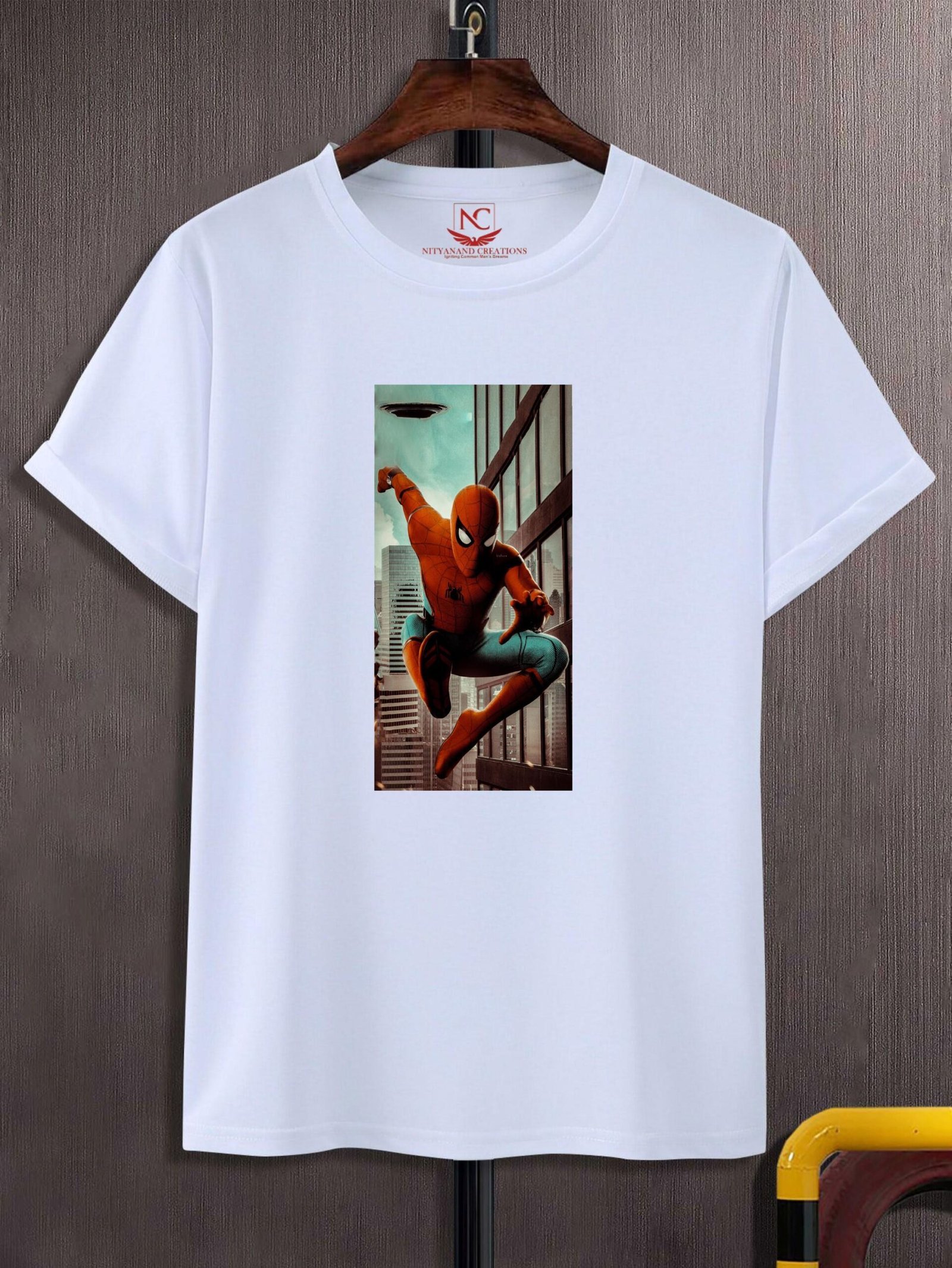 The graphic on the front showcases Spider-Man in a dynamic, action-packed pose, perfectly capturing the essence of this iconic superhero. With bold colors and sharp detailing, this print brings Spider-Man’s energy to life in a way that is sure to grab attention. The image pops against the pristine white background, making the design stand out and offering a unique, modern take on the classic superhero.