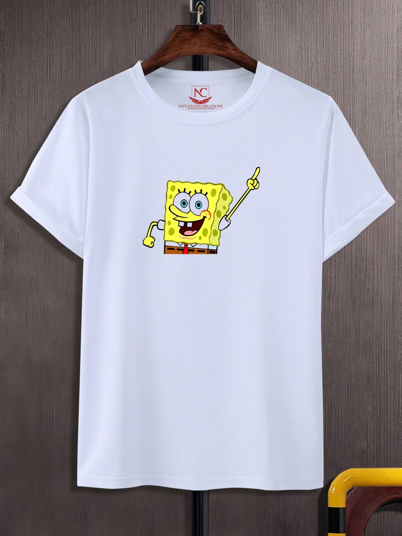 The graphic printed on the front of this white T-shirt showcases a colorful and dynamic image of SpongeBob SquarePants, possibly with his signature grin or in one of his many iconic poses. This lively design captures SpongeBob’s carefree, optimistic personality, adding a sense of joy and humor to your wardrobe. Whether he’s flipping Krabby Patties at the Krusty Krab or embarking on a wild adventure with Patrick, the design brings the fun of the SpongeBob SquarePants universe right to you. The high-definition print ensures the graphic is bold and vivid, allowing the design to pop against the white background, making it a fun and fashionable statement piece.