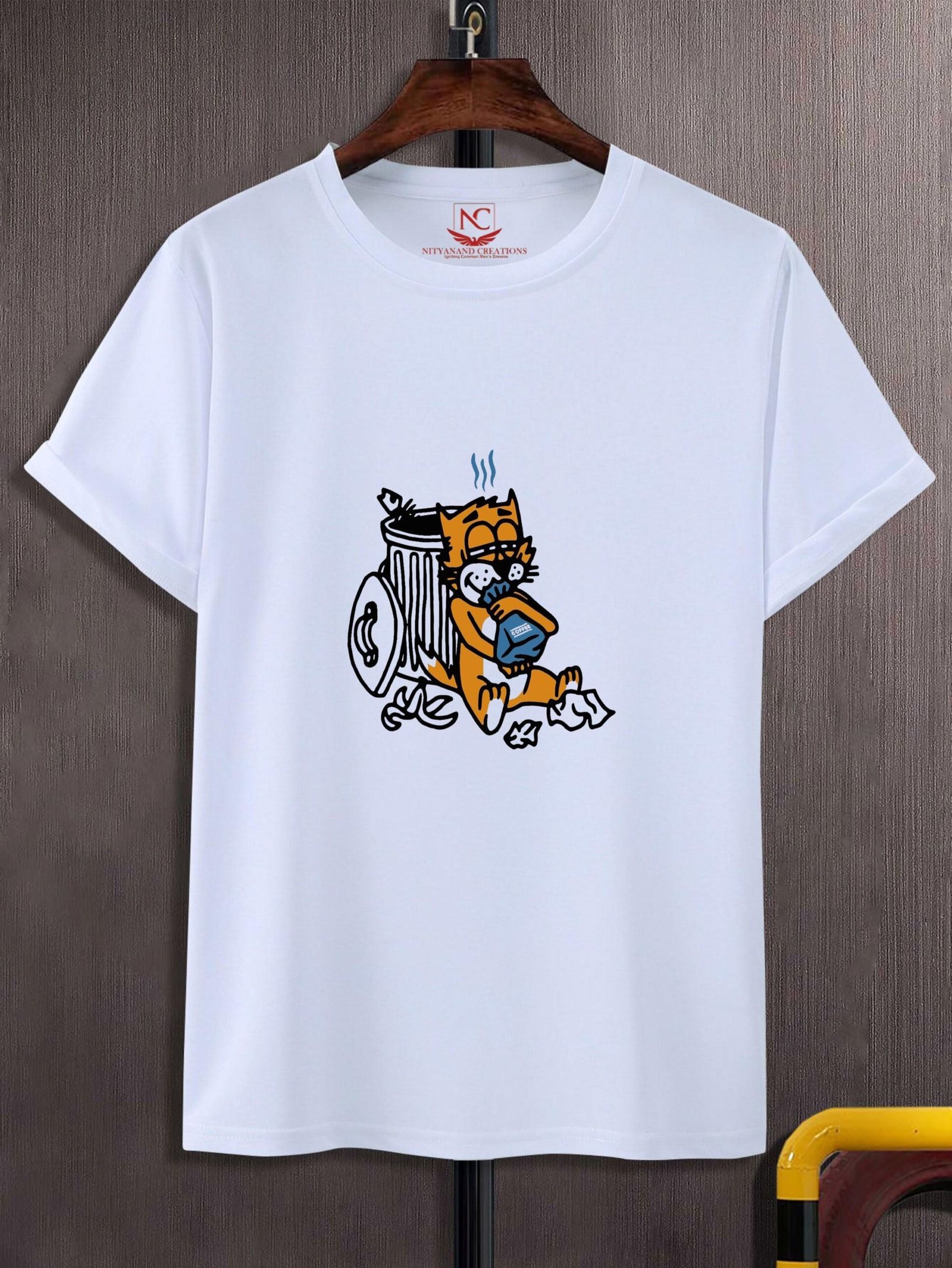 “Stinking Cat” Printed Polyester T-Shirt – Unleash the Mischief!-1100228