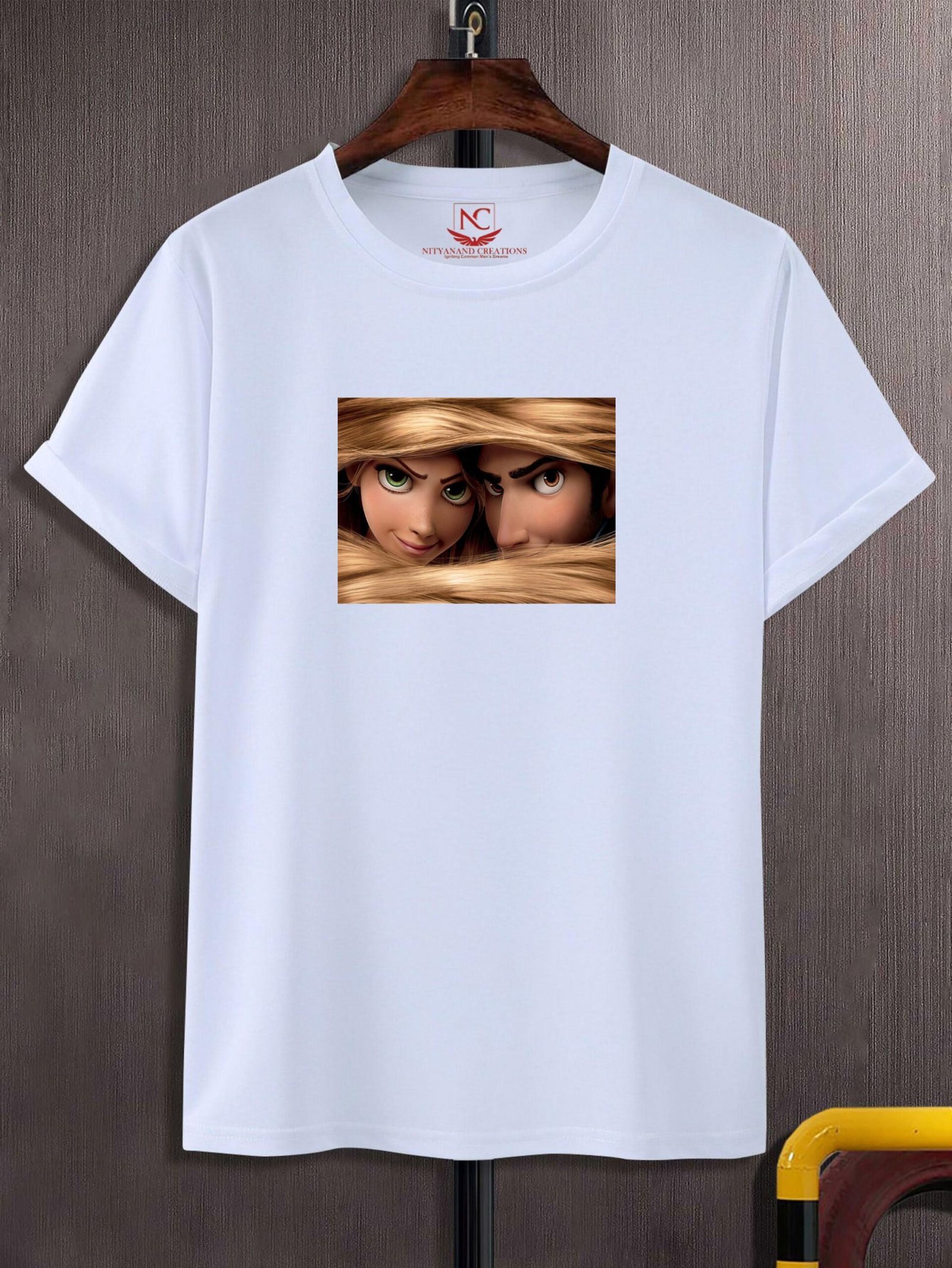 The standout feature of this t-shirt is its stunning graphic print that beautifully captures key moments from Tangled. The image showcases Rapunzel with her long, magical hair, set against the lush, vibrant backdrop of the enchanted world she inhabits. With intricate details and vibrant colors, the design encapsulates the spirit of the film—focusing on Rapunzel’s bravery, independence, and her unforgettable adventure with Flynn Rider.