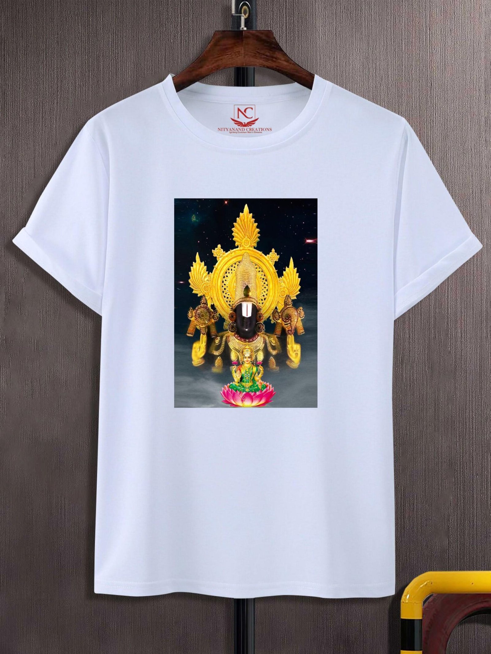 To keep your Trupati Baba Ji Divine White Graphic Tee in top condition, follow these care instructions: machine wash in cold water with similar colors to prevent any bleeding. Turn the tee inside out to protect the graphic during the wash. Avoid using bleach or harsh detergents, and opt for a low tumble dry setting or air drying to maintain the fabric’s quality and the print’s vibrancy. Proper care will help ensure that your tee remains fresh and vibrant for years to come.